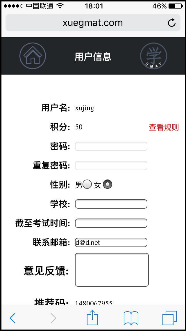登陆http://wkd2020.w99.mc-test.com/mobile/,填写正确的用户名和密码后,进入首页,并点击左上角“人头头像”,将打开后的“用户信息”页面进行截图,并发给快乐的鱼 (点击识别二维码),证明已经成为xuegmat用户。