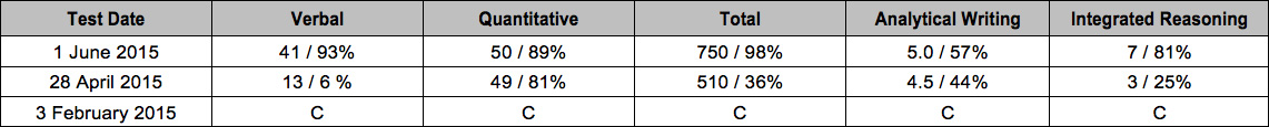 刚在可达GMAT官网看了别人的心经,我发现760分的人跟我QV成绩一样呐,所以我觉得,G果然是个很神奇的考试,通过一个月非人般的突击,我在考试时真正是享受在了其中,我觉得G不是一个考试,而是一个思维,没有760真心有点遗憾,我如果数学前几题再认真一点也许会更好吧。