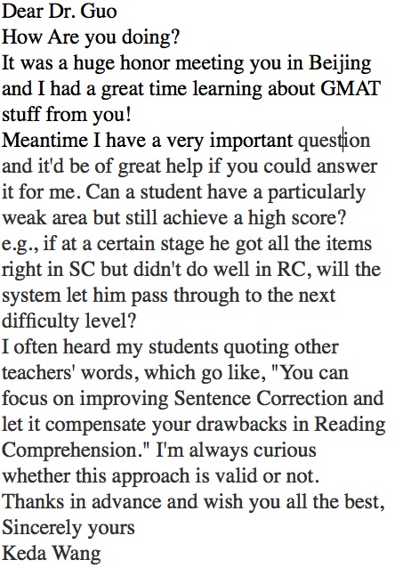 结论:中国考生应该更大胆的表达诉求,出题老头表示愿意聆听你的呼声。下次有什么想法我帮你们问,比如:能不能干脆把cancel记录也取消啊?能不能下次把阅读/逻辑/句改的单项分数也出示在成绩单里?